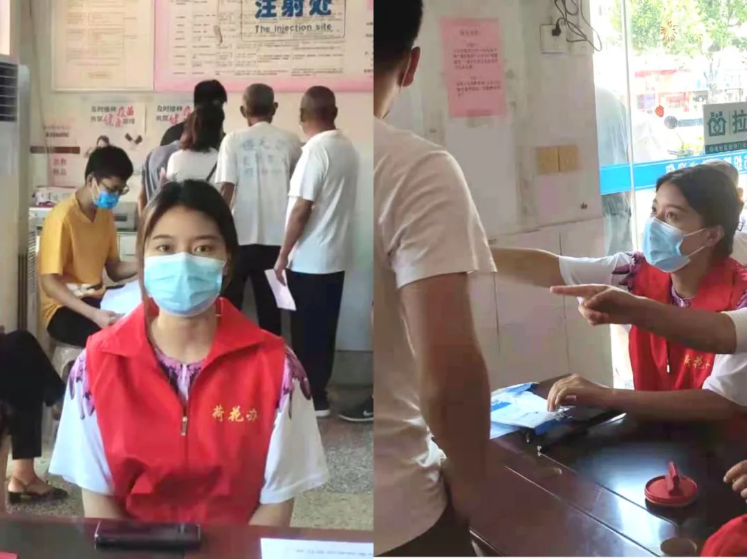20级会计本4班的苏闻同学在安阳市汤阴县第二次核酸检测中担任信息登记员的工作。她说:“8月5日,我的家乡汤阴出现了一名无症状感染者。听到这个消息,我非常担心,立即在之前的抗汛志愿者群中联系大家,我们再次集结在一起,听从指挥,竭尽所能地奉献着自己的力量。在第二轮核酸检测中,从下午5点到晚上1点,连续8个小时我负责登记信息,不停歇的工作让我非常疲劳,同时也感到很充实。”