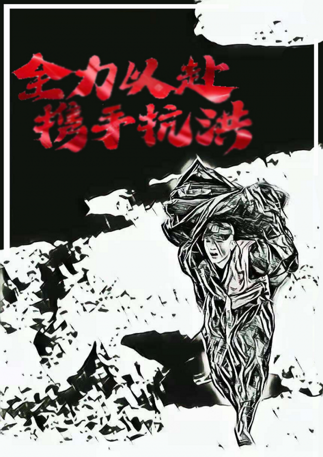 作品采用对角线分割画面,四幅采用卡通人物的形象,更加突出人物的表情、动态特点。画面采用暖色为主,冷色为辅,传达出抗洪救灾中的温暖。辅之少部分冷色,产生视觉冲击。用这幅画记录抗洪最美瞬间,最美的身影。