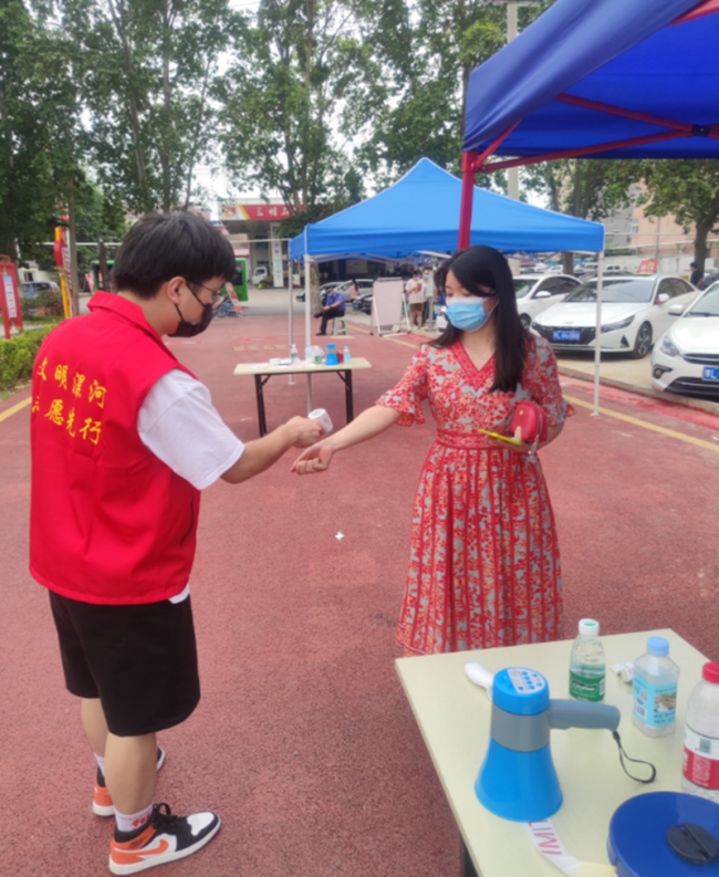 2020级网络工程专升本2班申盘龙响应当地漯河市政府号召,报名成为一名疫情防控志愿者,参加了漯河市第一轮全员核酸检测工作。作为志愿者,他主要承担测量体温,登记个人信息,解答群众疑问,维持核酸检测现场秩序等工作。申盘龙积极参与当地抗疫工作的举动也吸引了更多的大学生志愿者参与进来。申盘龙说:现在正是家乡面临考验的时候,我们新时代大学生更应该行动起来,加入到疫情防控队伍中去,用实际行动诠释当代青年人的担当,积极投身于这场没有硝烟的战役中,与家乡人民一起抗疫!