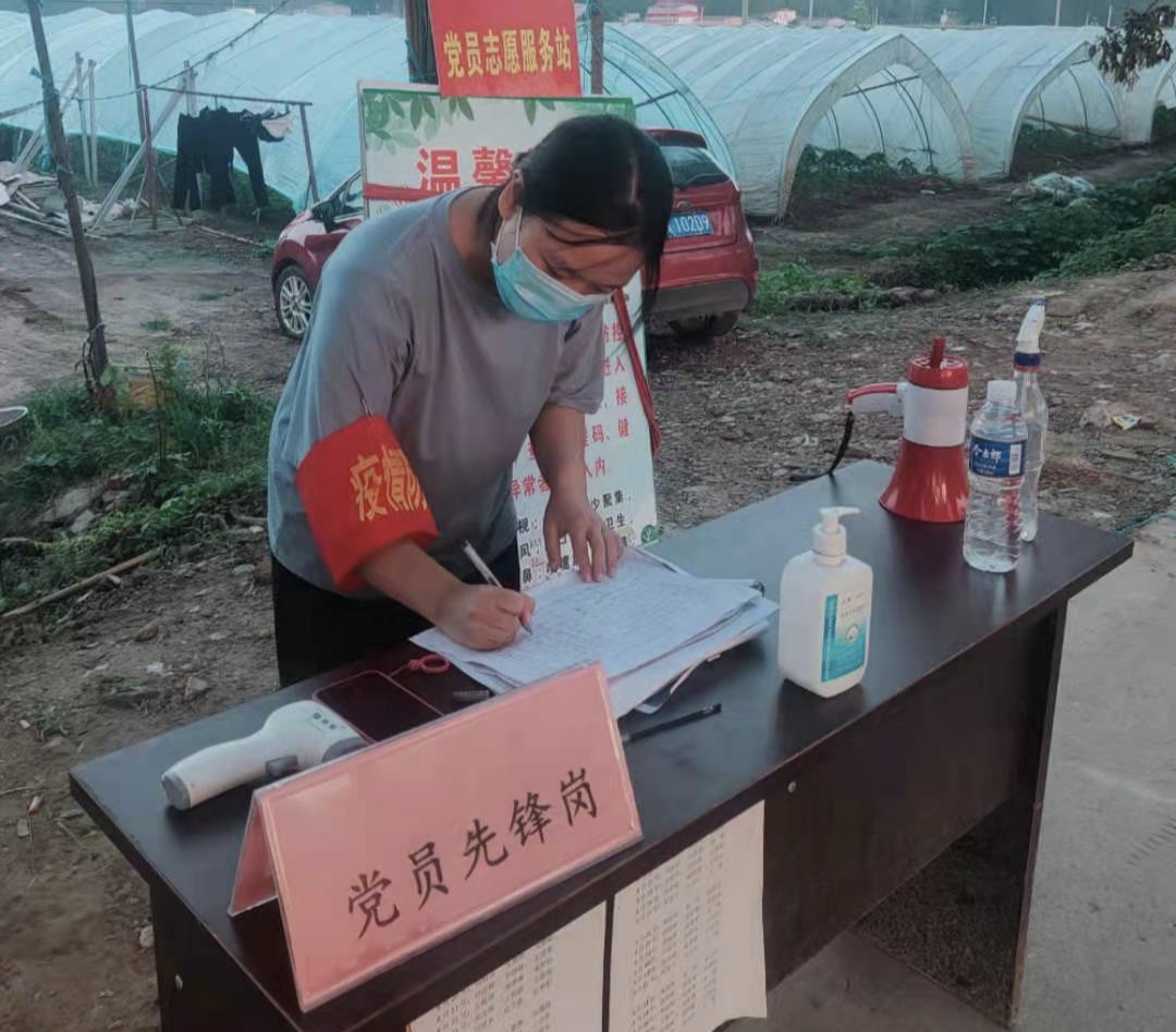 自7月份疫情反弹以来,外国语学院21级的准大一新生刘彤欣就在洛阳市宜阳县张坞镇平北村防控卡点值班。在村委会发布招募“青年志愿者”的通知后,她毫不犹豫地第一时间报名。她说:“身为一名准大学生,作为一名共青团员,我深知除了学习,对于国家、对于社会、对于家乡,我还肩负着更多的责任”。每天早上八点,她准时到达村口,做好消毒等防护工作后,坚守在卡点登记来往人员信息,测量体温。无论是酷暑天还是暴雨天,她都坚守在岗位,一遍遍地重复“出门请戴好口罩”“您好,请出示一下建康码和行程码”“我来为您测量一下体温”,无数次汗水浸湿了口罩。她说:“为了家乡的疫情防控工作,纵然再苦再累,我都觉得是值得的”。作为一名准大学生,每天值完班后,她还规划了学习时间,回家背英语单词、观看英语演讲视频。她表示,在正式开学返校之前,我会继续协助村干部做好疫情防控工作,切实增强村民的防疫意识,落实疫情防控措施,站好岗,守好责。