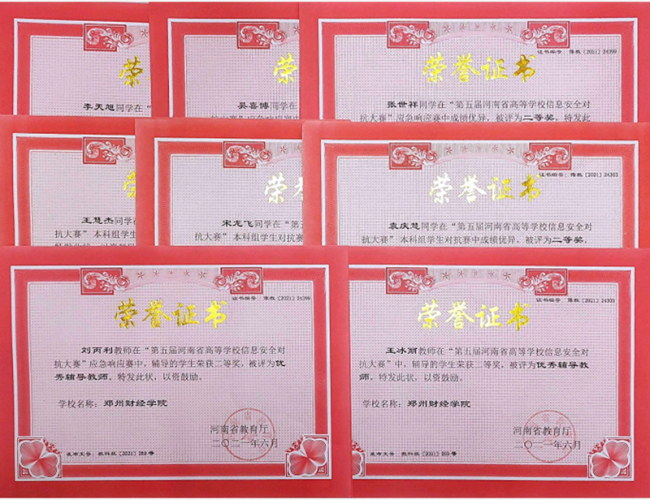 信工学子在第五届河南省高等学校信息安全对抗大赛中荣获佳绩