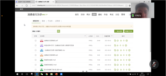 之后,齐有为、宋朝冉、王亚杰、常媛媛四位新教师代表汇报了线上教学准备情况。齐有为老师汇报了学习通课程建设和资料上传情况,并演示了导论课准备的具体内容。宋朝冉老师从课前准备、课中安排、课后作业三方面详细介绍了自己的课程设计。王亚杰老师针对管理学第一章内容汇报了自己的线上教学思路。常媛媛老师结合课程设计、课程资料准备介绍了《公共关系》课程的线上教学安排,同时也提出了一些疑惑,教研室其他老师进行了详细解答。