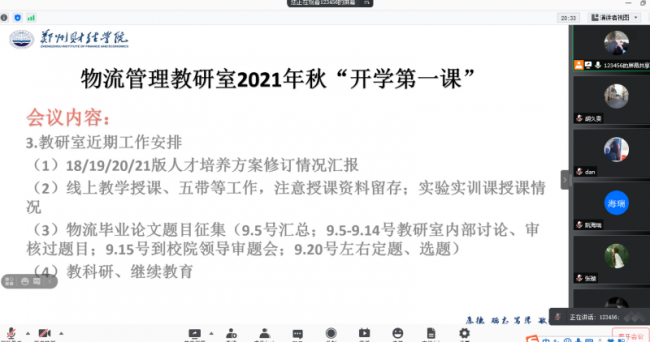 各教研室主任组织全体教学口教师参加云端会议,会上各教研室围绕通报学校疫情防控要求、传达学院期初教育教学工作、布置教研室近期工作及交流在线教学准备等内容展开,各教研室老师还热烈交流在线教学经验,探讨教研室学期工作。