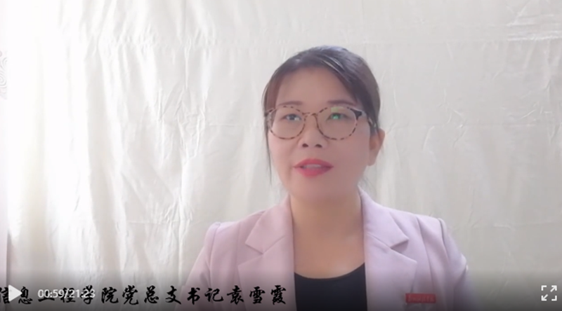 信息工程学院党总支书记袁雪霞对全体师生提出了四点期望和要求,一是克服困难,确保线上教学质量;二是做好“把灾难当教材 与祖国共成长”主题教育活动,小我融入大我,青春奉献祖国,向先进模范人物学习;三是提高学习主动性,展现大学生良好的精神面貌;四是学会感恩,传递正能量。