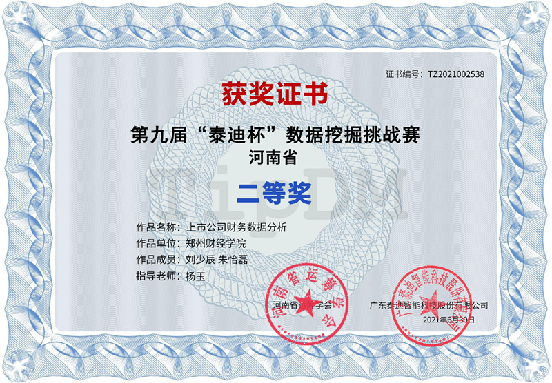 信工学子在2021年第九届“泰迪杯”数据挖掘挑战赛中获佳绩
