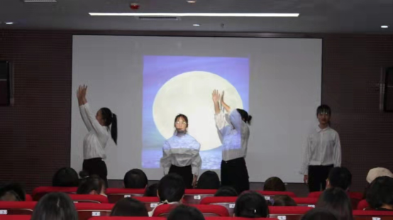 比赛在第一组《读中国》中拉开帷幕,整首诗气势恢宏,立意高远,诗韵浓浓。选手们情感收放自如,将自己与诗融为一体,切身体会内心深处的那一腔爱国情。第二组选手以《诗经》中“所谓伊人,在水一方”开场,让观众们感受到了其中所蕴含的独特之美,与千百年后的今天难以寻找到的“汉家儿郎”形成对比,引发同学们对传承传统文化的思考。第三组《传承国学经典》以先人不屈不挠的高尚品格,体现出国学经典的熏陶对中华儿女品德养成的重要意义。第四组选手带来的《传承》从焚书坑儒到文艺复兴,字字句句都透露出国学经典传承至今日的不易,进一步激发了同学们学习国学经典的积极性。