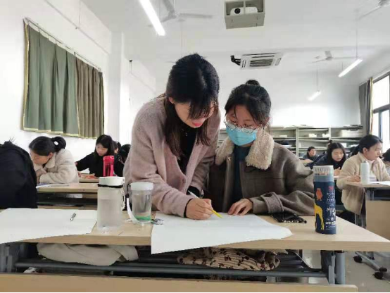在学院评建工作第五次推进会之后,教育学院美术、舞蹈课程组开始筹备磨课工作。在郑跃丽教授的悉心教导下,课程组再次对教学大纲、教案、课件、教学进度表等材料进行了整理、推敲和修改。利用课下时间,轮流对每位老师的授课做了细致的研磨,互听和互评。郑跃丽教授对每位教师的教学思路、语言语态、课件、学时规划等做了细致的点评,着重探讨了“课程思政内容的开展”和“教学方式的灵活运用”。经过了一周的反思和调整,再次进班互听、互评,对线上线下课程的衔接、板书、教态等问题着重进行了指导。