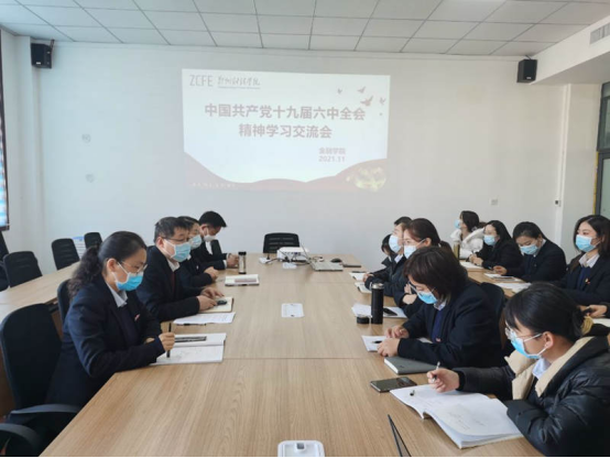 为深入学习贯彻党的十九届六中全会精神,11月26日,金融学院在德惠楼508会议室召开党的十九届六中全会精神学习交流会,金融学院全体教工党员参加会议,会议由教工党支部书记张燕主持。