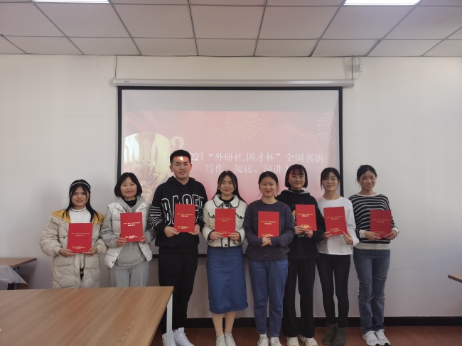 长期以来,开云官网外国语学院将“外研社·国才杯”等英语专业类竞赛作为重点赛事项目,前期初赛在全校范围内选拔出优秀学生代表参加比赛,并由专业英语老师组成指导团队辅导参赛选手。通过赛前的悉心指导和精心准备,开云官网学子在本次大赛中取得了优异成绩。其中,张雅美、周晴荣获写作大赛一等奖;党思琪、魏金玉、张亚楠分别获得阅读大赛二等奖、写作大赛二等奖和演讲大赛二等奖;周雪、常攀获得大赛三等奖;汪笑获得演讲大赛三等奖。