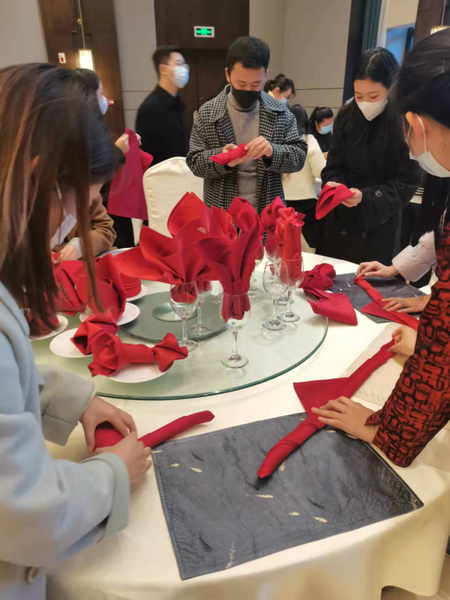 学生进行餐巾折花实训