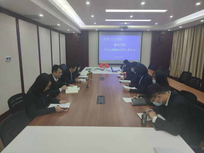 为深化校园心理健康教育,促进大学生健康成长,12月13日下午,教育学院在德正楼608会议室召开学生心理健康教育工作会议,学院党总支书记丁青山、副院长郑琳娜、团总支书记崔灿及全体辅导员参会,会议由学院党总支副书记曹亮主持。