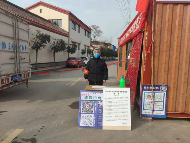 20智控1班李斌同学在村口测量出入人员体温