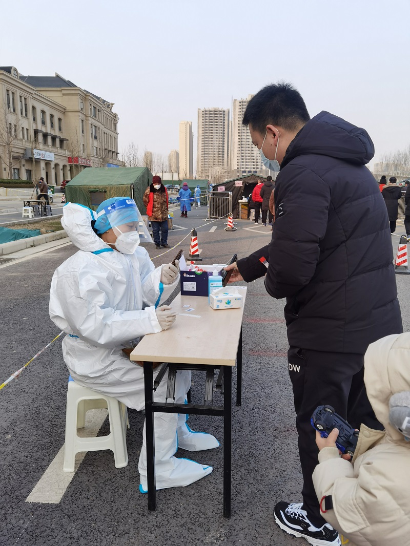 王空前说:“在核酸检测现场,天气很寒冷,医护人员穿着防护服,工作真的很不容易,我深刻体会到他们的无私付出,也感受到人间暖暖的情谊。但愿疫情随风去,岁月静好人安宁。”