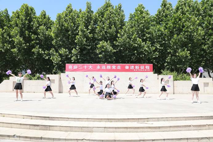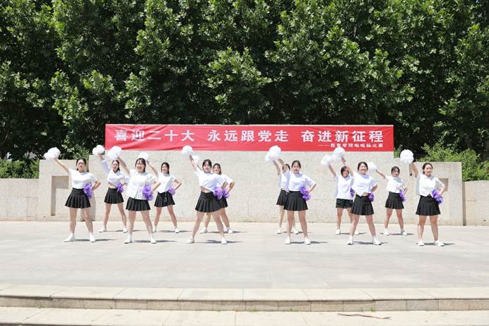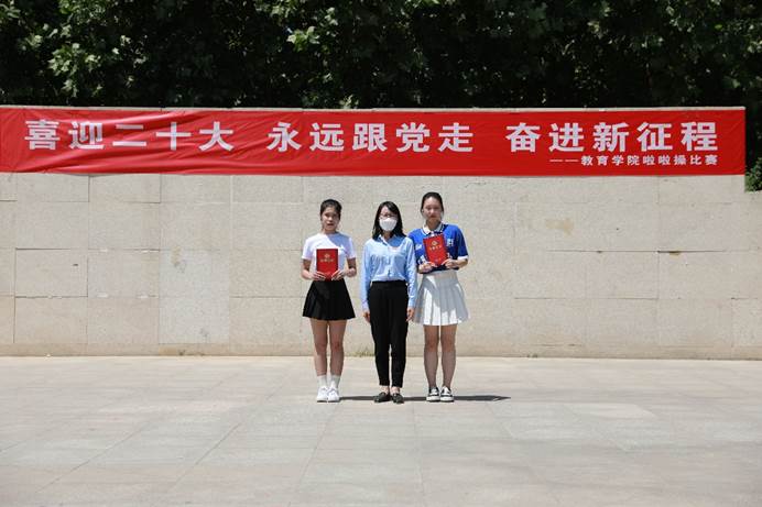 为激励广大青年学生积极参加校园文化活动,营造健康文明的校园文化氛围,弘扬时代精神,激发青春活力,教育学院开展了“喜迎二十大、永远跟党走、奋进新征程”啦啦操比赛。经过激烈的初赛、复赛选拔后,共有六支队伍脱颖而出进入决赛。5月16日中午,教育学院啦啦操决赛在文化广场举行,学院党总支书记丁青山、副院长郑琳娜及全体辅导员现场观看比赛。学院团总支书记崔灿、体育教学部陈雅琪老师、艺术教学部常露文老师、教育学院王越和侯雪妍老师担任比赛评委。