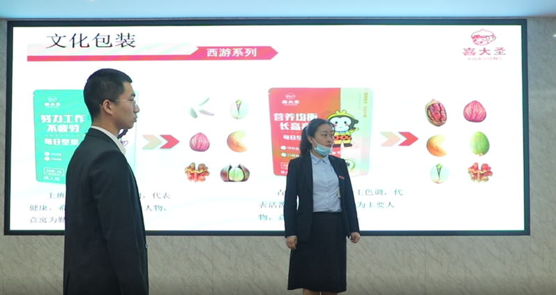 在商学院宋艳萍和聂攀科两位老师的指导下,“喜大圣坚果品牌策划工作室”学生团队在校内选拔赛中脱颖而出,并被推选参加全国品牌策划大赛。为了更好地准备全国品牌策划大赛,两位指导老师组织参赛团队开展了赛前动员会,会上向团队成员介绍了备赛注意事项,并对团队的策划方案提出了修改意见。