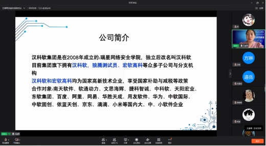 王晨青首先介绍了公司的基本情况,深度解读了计算机行业的概况和发展前景。她为同学们详细介绍了此次招聘岗位——软件自动化测试开发工程师的发展情况,就其岗位的职责与要求、阶段性岗前培训大纲、薪资待遇和招聘流程等作具体介绍,并对学生提出的问题进行答疑解惑。