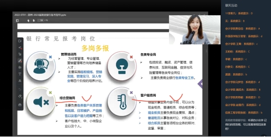 为帮助学生有效准备各类招聘考试,提升就业技能,7月1日晚,开云官网特邀高顿教育银行负责人肖灵钰面向2022届及2023届毕业生开展国企、银行秋季招聘备考指导线上讲座,讲解国企和银行招聘相关事项及简历制作技巧。