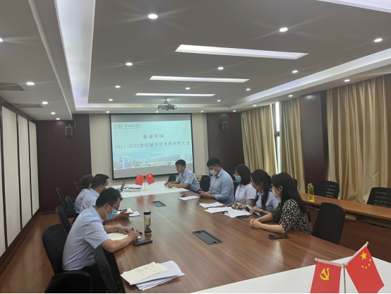 教育学院党总支书记丁青山对全体辅导员在2021-2022学年的工作成绩表示肯定,对大家在学生管理工作中的辛勤努力表示感谢。他指出,辅导员队伍是人才培养的重要骨干力量,教育学院历来重视加强辅导员队伍建设,希望全体辅导员以本次述职考核为契机,认真总结工作,明确努力方向和改进措施,在工作中勤于反思,改进工作方法,提炼工作特色,提升学生工作和管理水平,做好学生成长与发展的引路人。