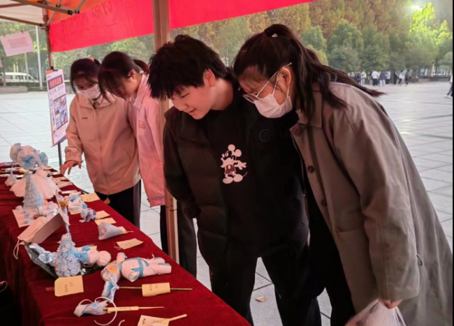 活动中,组织人员将评选出的优秀作品在文化广场进行展览,众多优秀的作品吸引了大家的目光,同学们纷纷驻足观看。