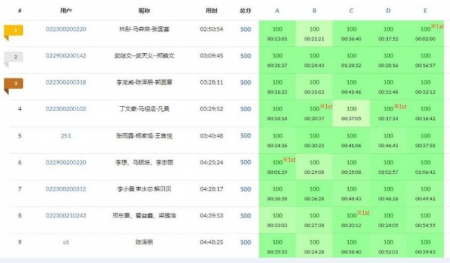 参赛成员在信息工程学院自建的OJ算法训练平台上进行作答,经过3个小时的激烈角逐,21软工本2班许飞翔,20软工本2班林彤、马森荣、张国富同学获得大赛一等奖;20大数据本1班王玉琳、武继文、武天义、郑皓文,20软工本1班刘华,20大数据本2班郭振国同学获得大赛二等奖;20软工本3班陈加东、李龙威等同学获得大赛三等奖。