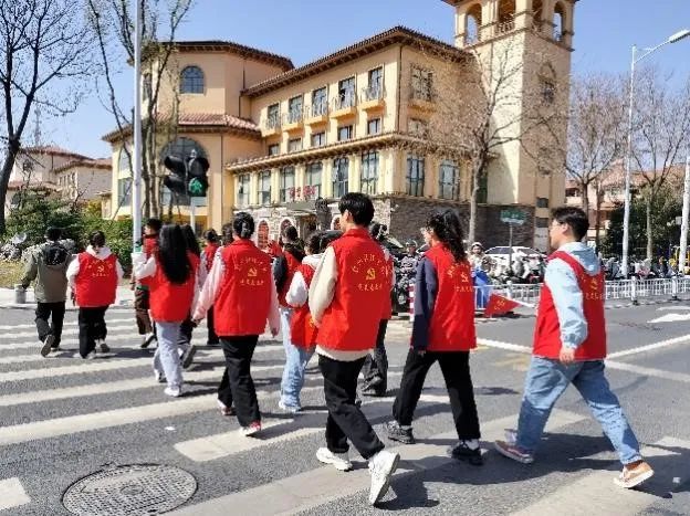 同学们身穿红色马甲,化身为最美志愿者,自发在保护中心附近开展维护道路交通安全志愿服务活动,提醒过往行人减速慢行、遵守交通规则,不闯红灯,不翻越护栏设施,过马路时走人行横道,并做到“一慢二看三通过”,确保安全后再通过。