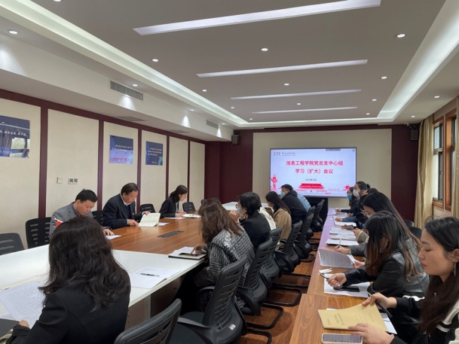 3月31日上午,信息工程学院党总支理论学习中心组学习(扩大)会议在德正楼508会议室召开,学习传达2023年全国两会精神及观看《榜样7》专题栏目。学院班子成员、总支委员、支部书记、全体辅导员参加会议,党总支书记廖兰芳主持会议。