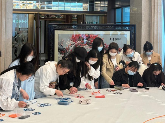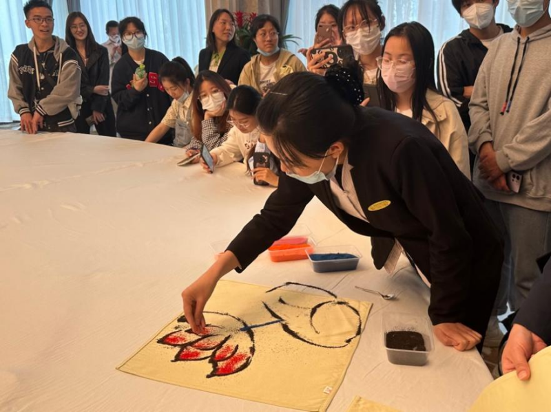 黄河迎宾馆餐饮部负责人为开云官网学生演示小米摆台