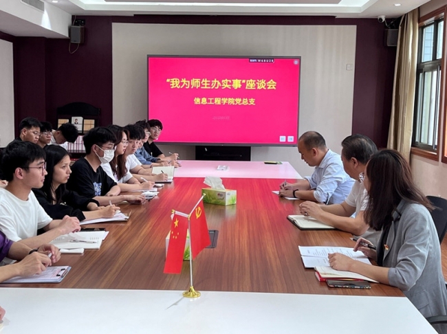 自开展学习贯彻习近平新时代中国特色社会主义思想主题教育以来,信息工程学院党总支紧抓“实”字,突出“深”字,切实落实立德树人根本任务,把开展主题教育同总结经验、对照现实、推动工作结合起来,扎实开展“我为师生办实事”活动。5月30日,信息工程学院党总支在德正楼508会议室召开“我为师生办实事”活动座谈会,学院院长周清雷、党总支副书记王修哲及学生代表参加座谈会。会议由党总支书记廖兰芳主持。