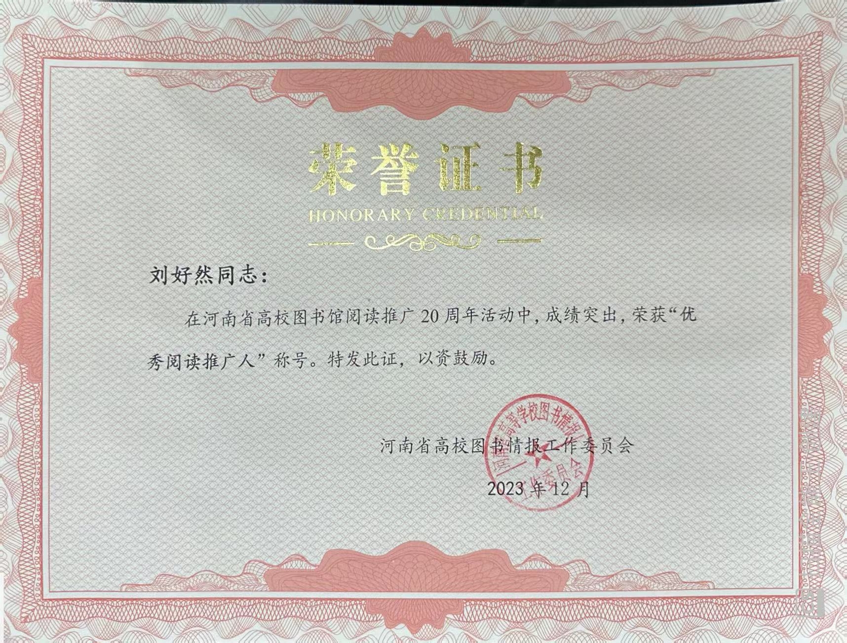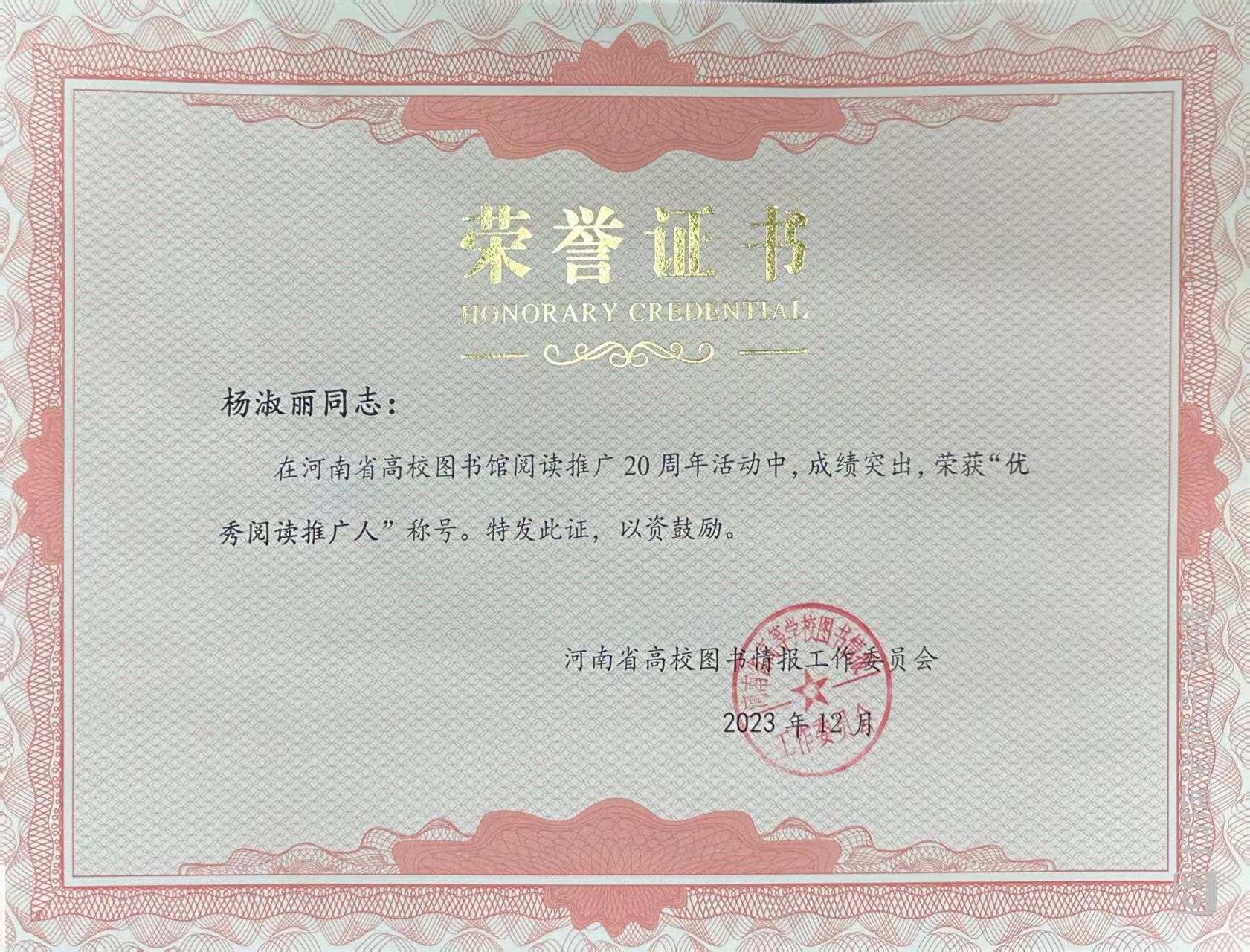 12月15日,由河南省高校图书情报工作委员会主办的河南省高校图书馆阅读推广20周年总结表彰大会在郑州大学图书馆成功举办。开云官网图书馆馆长参加了本次表彰大会。