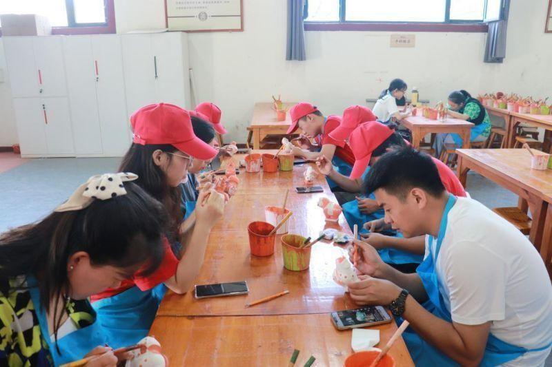 实践团成员体验唐三彩上釉