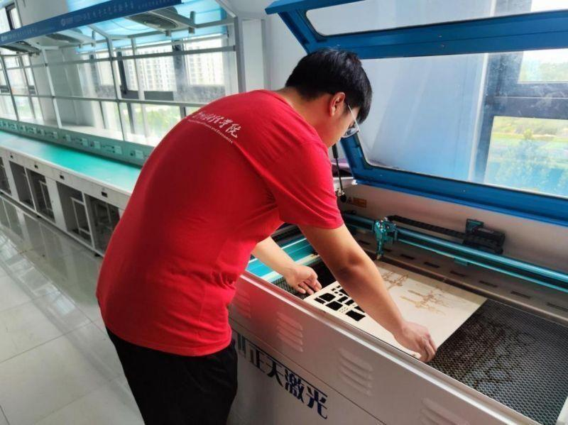 实践团成员利用非金属切割机制作非遗小作品