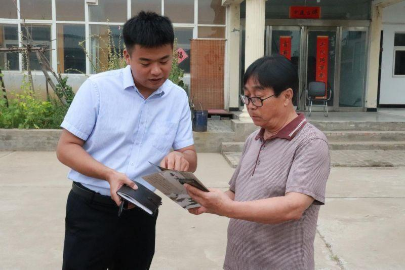 带队老师崔瑞凯给黄氏青铜器传承人发放宣传单
