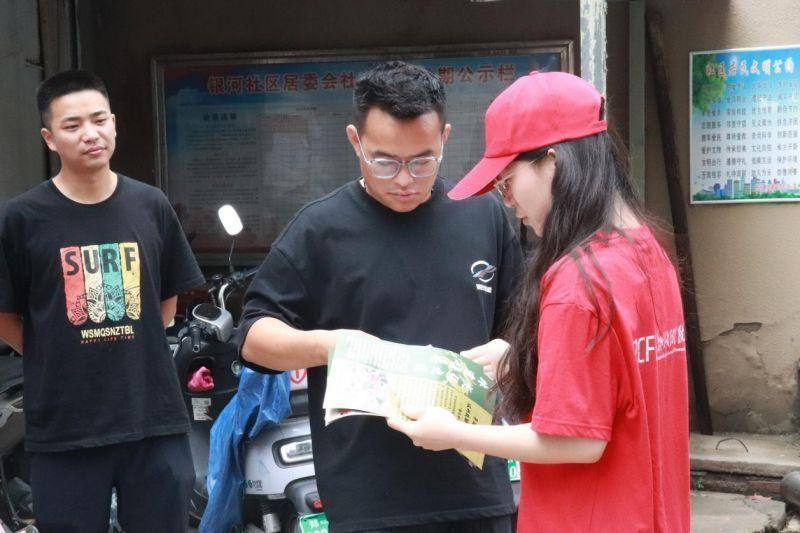 实践团成员向银河社区工作人员发放宣传册