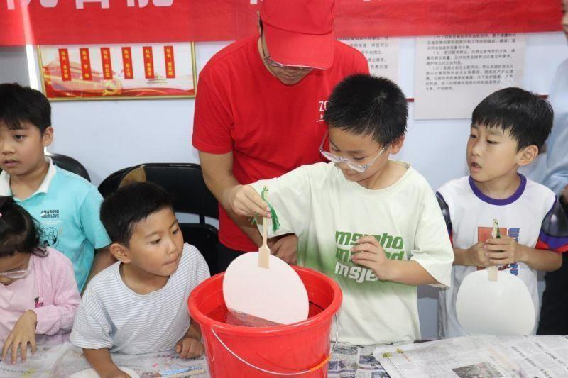 实践团成员带领孩子们制作非遗漆扇