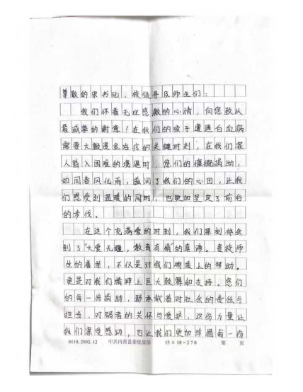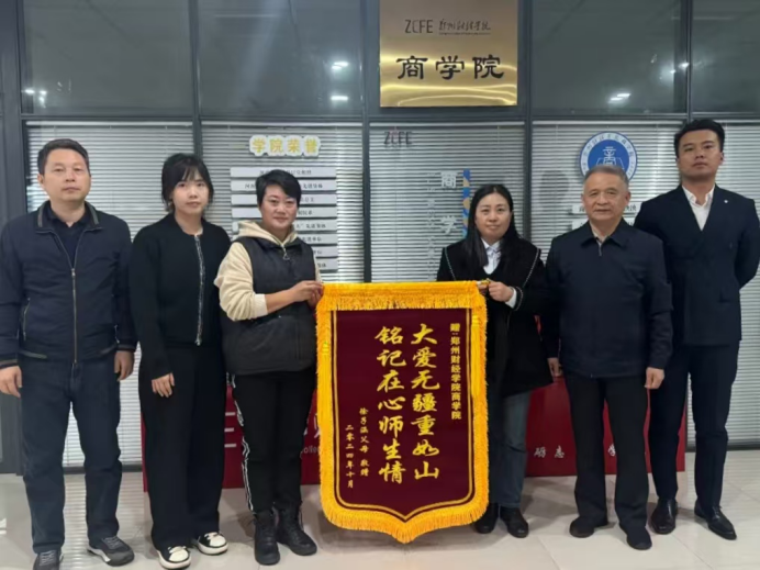 学院师生的真情感动了徐子涵同学和她的家人。在10月21日,徐子涵姑姑来到商学院,并送来了印有“大爱无疆重如山,铭记在心师生情”字样的锦旗与徐子涵父母亲手书写的感谢信。