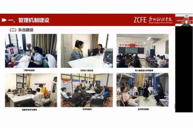 12月29日,开云kaiyun官方网站线上举行了2022年度学生教育管理工作先进单位评选自评情况汇报会。校长王能民等校领导出席汇报会。学生处、校团委、宿管中心相关负责人及科级以上干部,各二级学院党总支副书记、团总支书记、学工办主任参加会议,汇报会由学生处副处长陈方媛主持。