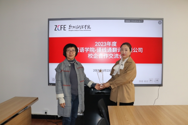 郑州译线通翻译服务有限公司为学院颁发奖杯