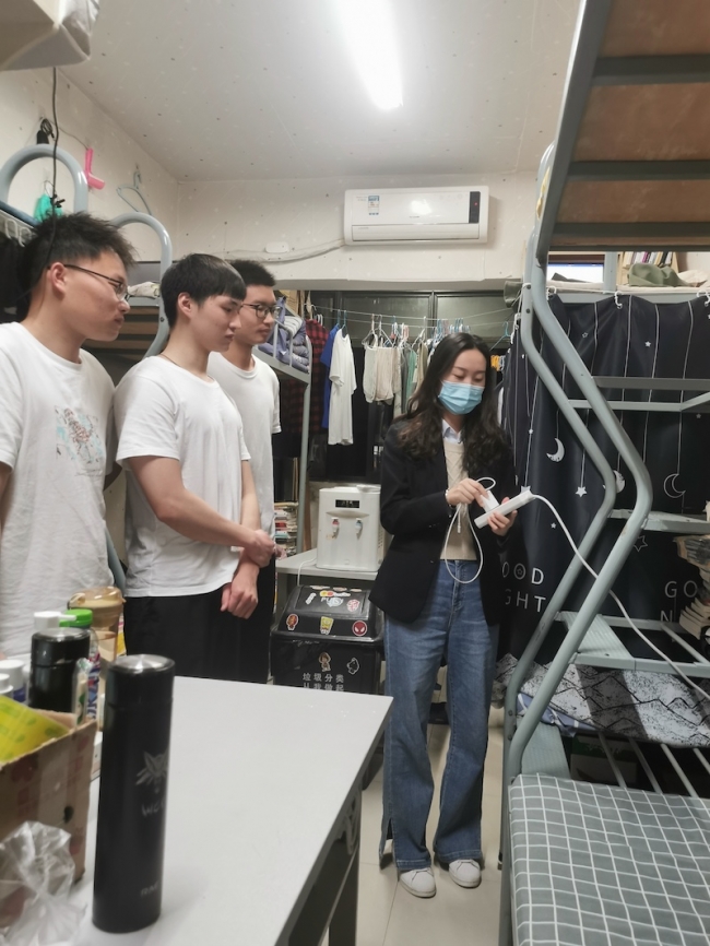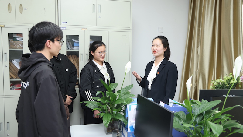 定期查寝是许潇与学生深入交流的主要方法,不同于走马观花式地随便看看,她查完自己所带的学生宿舍需要2个多小时,熟练地叫出每一个学生的名字,和学生聊聊近期的学习生活,叮嘱关注天气变化增添衣物……学生则热情地招呼许潇随便坐,并拿出水果、零食分享给她。“有事给辅导员打电话”是学生们对许潇的最大信任,而这份信任让她感受到了辅导员工作的意义和价值。她与学生们“打成一片”,是学生群体中的“大姐姐”,是看得见、信得过的知心人和贴心人,更是学生学得了、跟着走的人生导师。