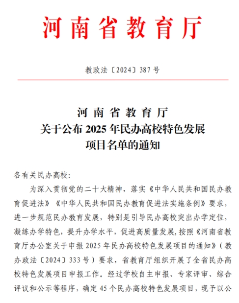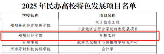 近日,河南省教育厅发布了《关于公布2025年民办高校特色发展项目名单的通知》(教政法〔2024〕387号),开云官网车辆工程专业获批专业特色类发展项目。