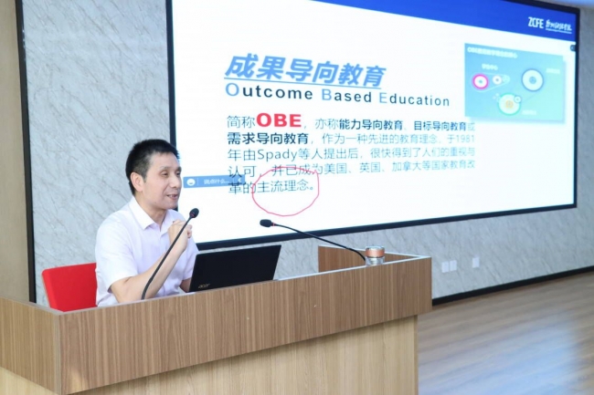 讲座主要围绕“成果导向的教育理念、教学设计和教学实施”三个方面展开。张顺利从“什么是OBE”谈起,着重强调实施OBE理念应重点把握的三个关键问题:成果导向的反向教学设计、以学生为中心的教与学的实施、持续改进的教学评估。他系统讲解了人才培养目标、毕业要求、课程体系与教学内容等环节之间的关系,指出OBE需要融入人才培养方案,按照成果导向反向设计思路进行教学设计。同时指出,OBE教育理念对培养高校教师课程意识提出了更高的要求,是学校新发展阶段对教师教学的新要求和新举措,将“OBE”教学理念融入到课程大纲、教学单元设计以及课堂教学各环节,是以学生为中心、服务学生的具体体现,希望参会教师在今后的教学设计中,要学会遵循OBE教育理念,进一步提高教学设计能力,提升教书育人水平。