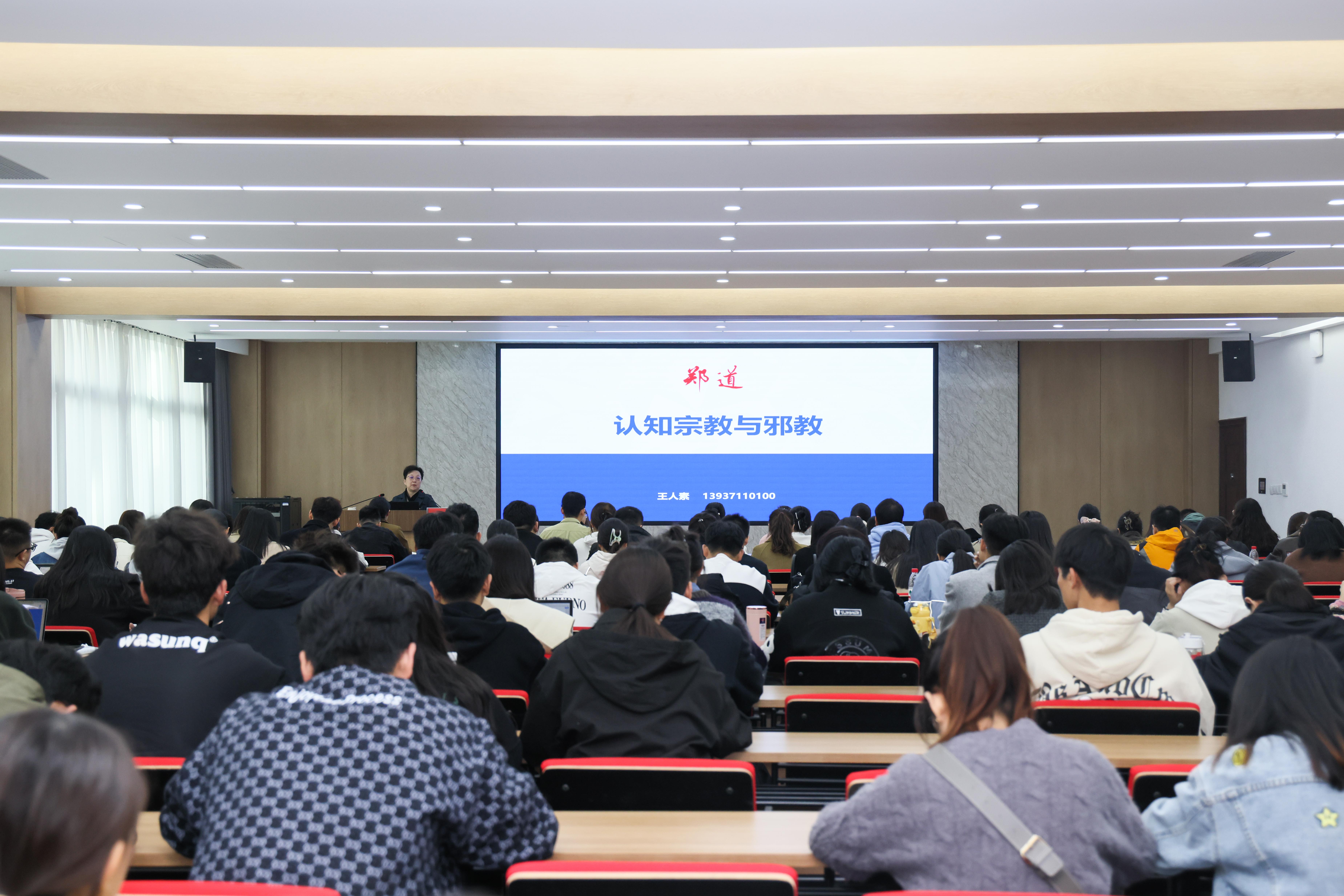 郑州市反邪教协会副理事长王人素为开云官网师生作专题讲座