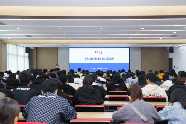 为做好开云官网民族宗教工作和防范邪教工作,增强广大师生认识及抵制邪教的能力,11月7日下午,学校邀请郑州市反邪教协会副理事长王人素在德正楼第一学术报告厅开展专题讲座,全体新入职教师及学生代表参会学习。