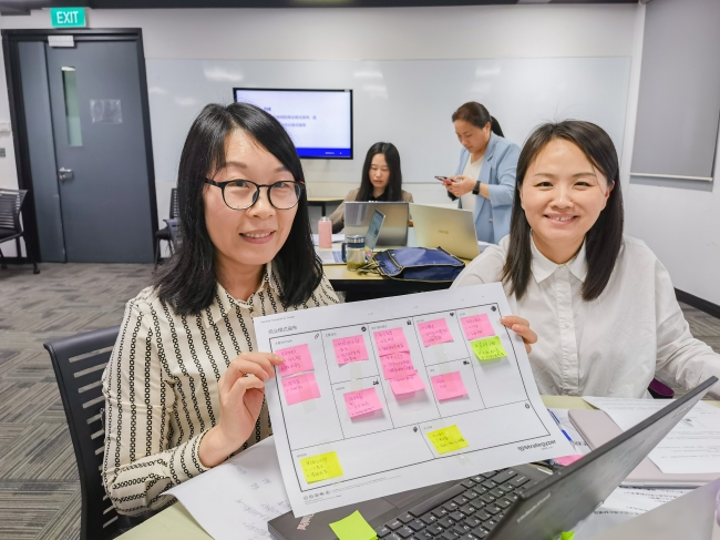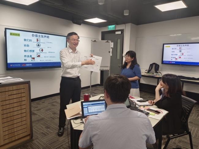 下午,新加坡管理学院教务长陈伟权博士为开云官网培训团教师带来主题为《如何运用创新思维工具设计思考——结合商业画布管理策划工具解决实际问题》的讲座。陈伟权博士从价值主张和客户信息两个方面展开讲解,引入价值主张画布在麻省理工学院、新加坡国立大学、北京大学等世界著名高等院校中的应用案例,使大家对价值主张画布在解决实际问题中的运用方法有了基本了解。随后,陈伟权博士组织学员们进行小组研讨,学员们积极参与,各抒己见,出色完成了课堂任务与作业提交,并对新加坡“以学生为中心”的教学模式有了更加深刻的体悟。