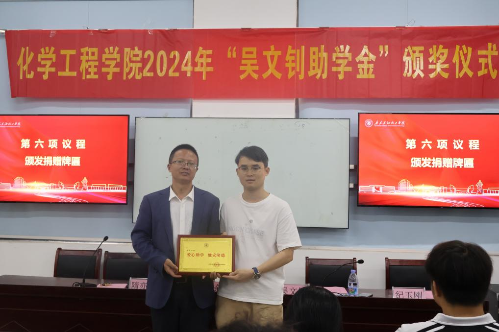 颁奖仪式上,吴文钊宣读《关于表彰2024年“吴文钊助学金”获奖学生的决定》,并向获奖学生颁奖。学生代表表示将发奋图强、自立自强,以实际行动回报学校的关爱和校友的资助。余长林代表学校向吴文钊校友颁发捐赠牌匾,以表达对校友捐资助学最诚挚的谢意。