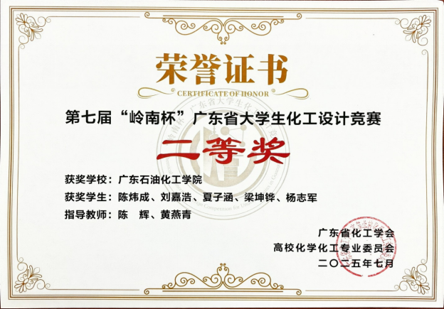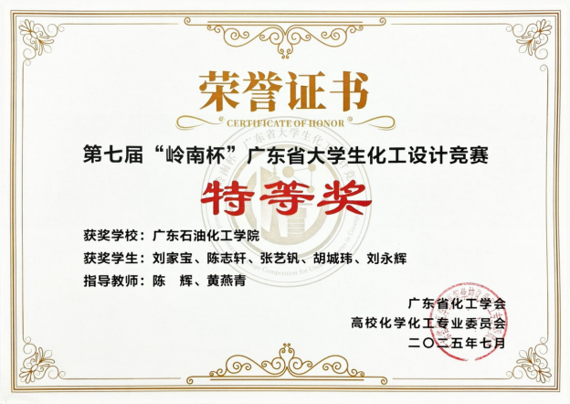 近日,第七届“岭南杯”广东省大学生化工设计竞赛圆满落幕,经过设计文档质量、现代设计方法应用、工程图纸质量的网评初审,PPT汇报展示、答辩成绩的激烈角逐,由陈辉教授、黄燕青老师指导的五个团队获特等奖1项、二等奖4项。