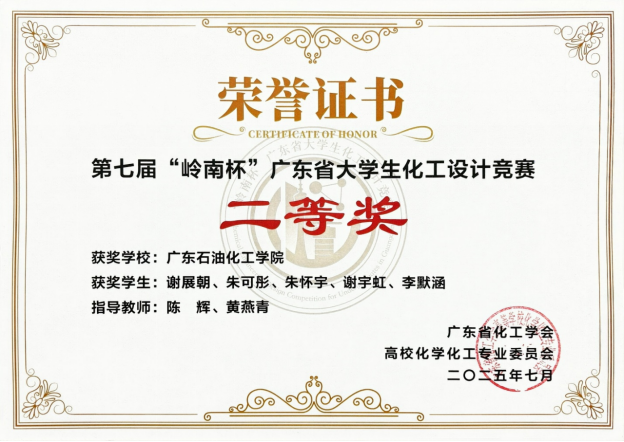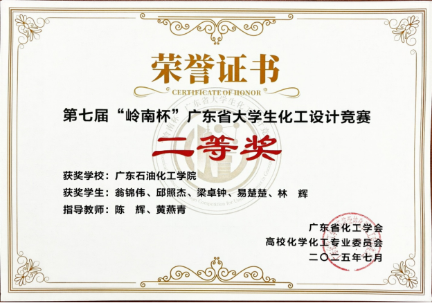 广油学子获第七届“岭南杯”广东省大学生化工设计竞赛五项奖