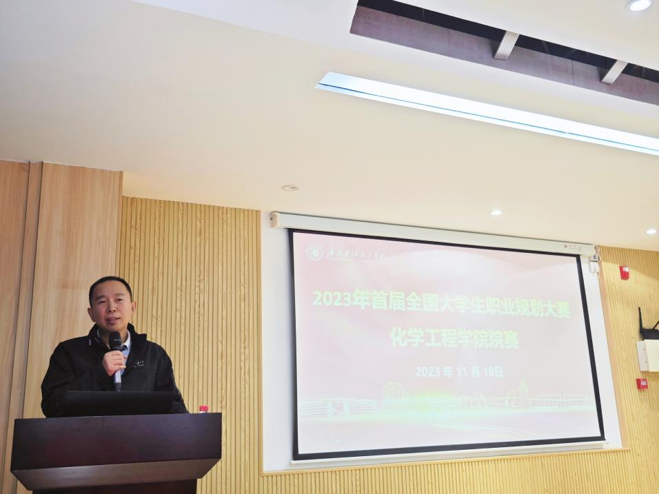 2023年11月18日下午2点,化学工程学院在西城校区综合教学楼G318举行了首届全国大学生职业规划大赛化工学院选拔赛。出席本次大赛的评委有化学工程学院党委副书记纪玉刚、化工学院辅导员黄清意、臧红岩、李洋。化学工程学院学生干部代表观看了比赛。