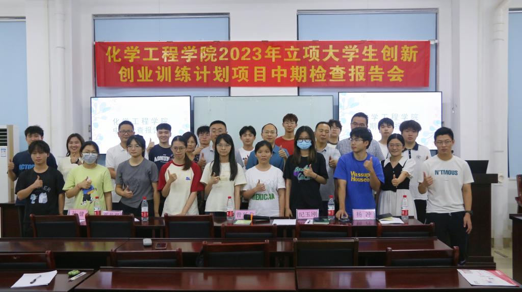 5月11日晚,化学工程学院在化工楼C104组织开展了“2023年立项大学生创新创业训练计划项目中期检查报告会”。化学工程学院党委副书记纪玉刚、副院长曾兴业,双创学院副院长孙健、胡紫音老师,石油化工系副主任杨冲、邓益强老师、辅导员黄丹颖及各项目成员参加本次活动。