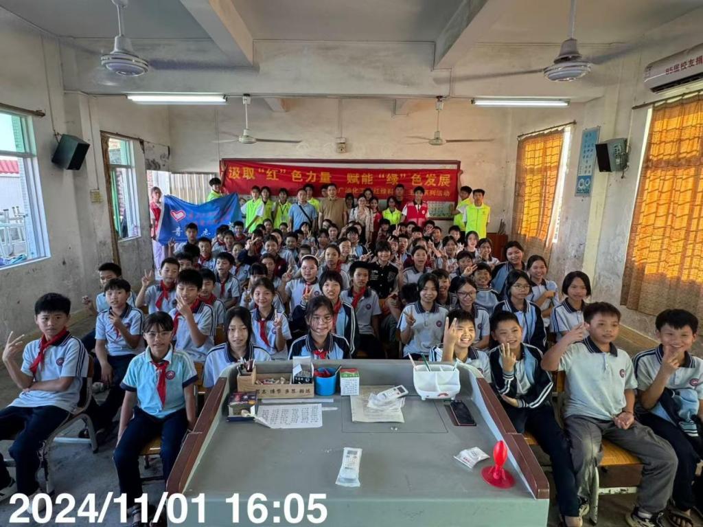 为落实学校“双百行动”总体部署,11月1日下午,化工学院在化州市良光镇长安村小学举行“汲取红色力量 赋能绿色发展”科普宣讲活动。长安村小学吴尚卓校长,长安村小学老师,化学工程学院辅导员黄清意老师,黄丹颖老师,退伍大学生,大学生党员代表、大学生志愿者及长安村小学学生参加活动。