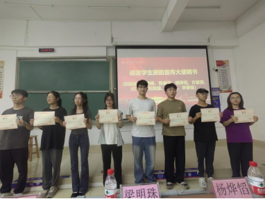 为发挥优秀学子的辐射带动作用,黄丹颖老师为多名获得国奖、国励和各类奖助学金的学生颁发“学生资助宣传大使”聘书,勉励他们以自身经历传递励志精神,助力学院资助政策宣传。梁明珠老师则为个性奖学金获得者颁发了“个性奖学金宣讲大使”聘书,号召学生在专业特长、创新创业等领域探索个性化发展路径。